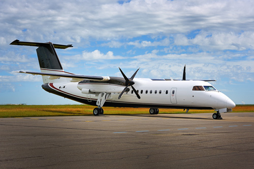 Sunwest uses Dash-8s to ferry oil patch workers to and from work. There is no scheduled airline service in Conklin.